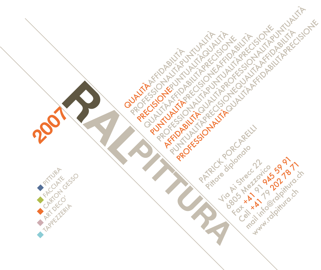 RAL Pittura è sinonimo di qualità, passione e dedizione. Fondata da Patrick Porcarelli, l’azienda vanta una lunga tradizione nel settore della pittura e delle finiture decorative. Da oltre 30 anni, RAL Pittura rappresenta un punto di riferimento per chi cerca soluzioni professionali, innovative e sempre all’avanguardia. Il nostro obiettivo è quello di offrire servizi su misura, mettendo al centro le esigenze dei nostri clienti.